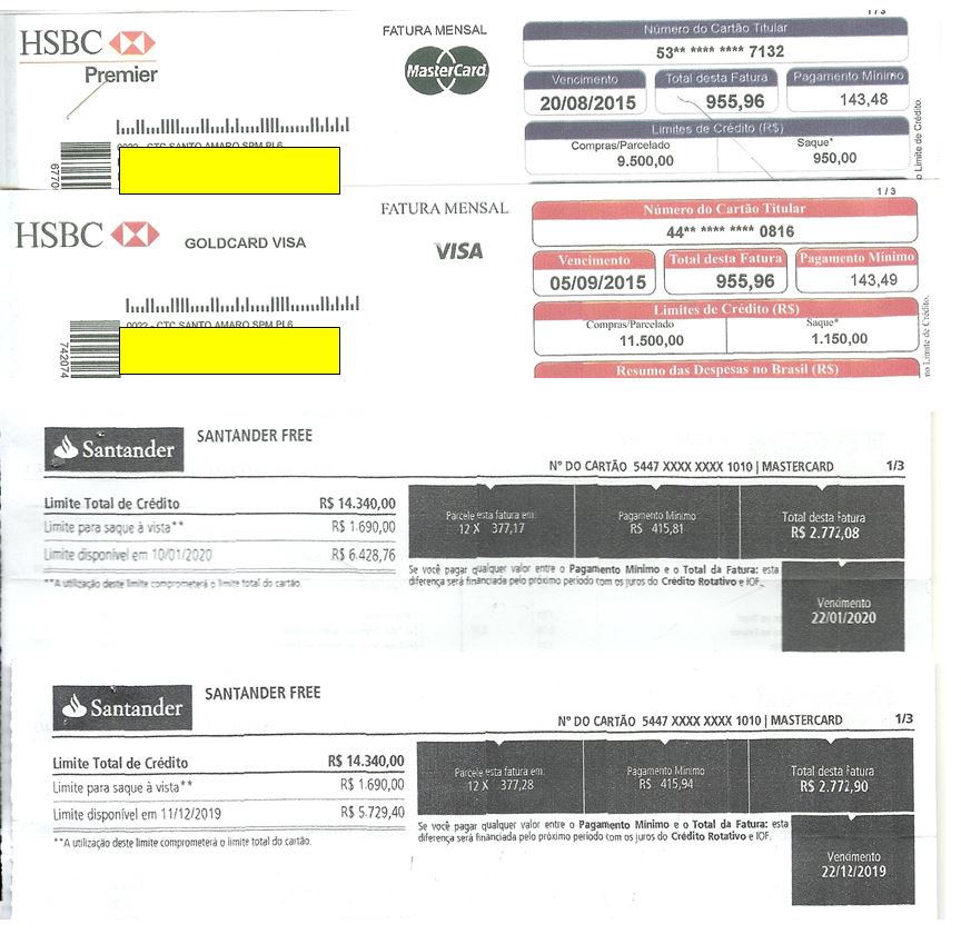 Em agosto e setembro de 2015 eu movimentava 2 cartões de crédito do HSBC e as datas de vencimento eram defasadas em 15 dias. As despesas efetuadas eram divididas conforme ocorriam e geravam aproximadamente 8 despesas por cartão. Por incrível coincidência, ao pagar o cartão Visa, de 15 de setembro, notei que o valor era exatamente igual ao pago no Mastercard de 20 de agosto. Uma outra curiosidade neste caso é que apesar das faturas serem iguais os pagamentos mínimos tinham uma diferença de um centavo.
