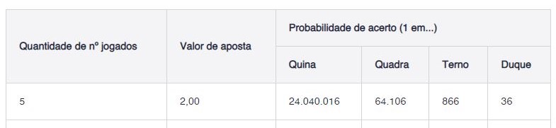 Probabilidade da Quina: