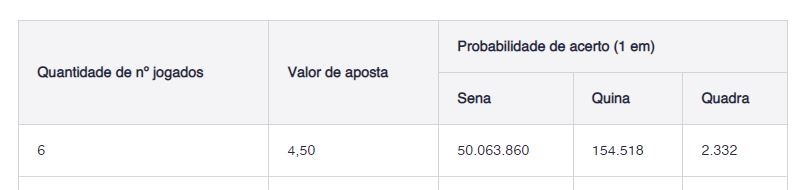 Probabilidade da Mega Sena:
