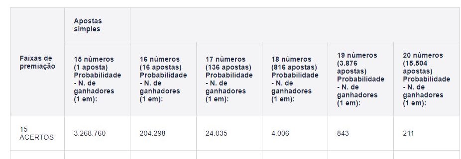 Probabilidade da Lotofacil: