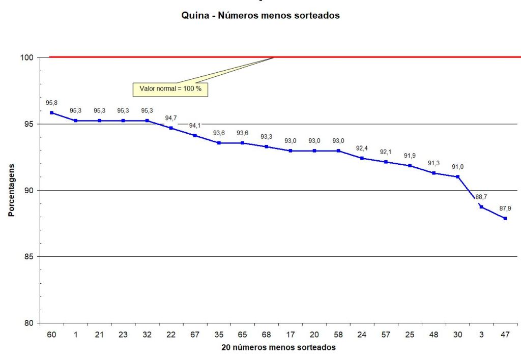 O número “47”, o menos sorteado, sempre esteve em posições inferiores (60ª a 80ª).