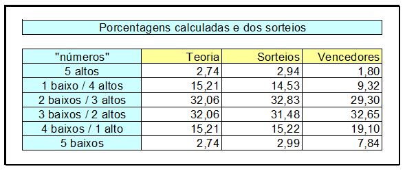 Calculando-se as probabilidades teóricas desses agrupamentos, as incidências nos sorteios e as dos vencedores tem-se: