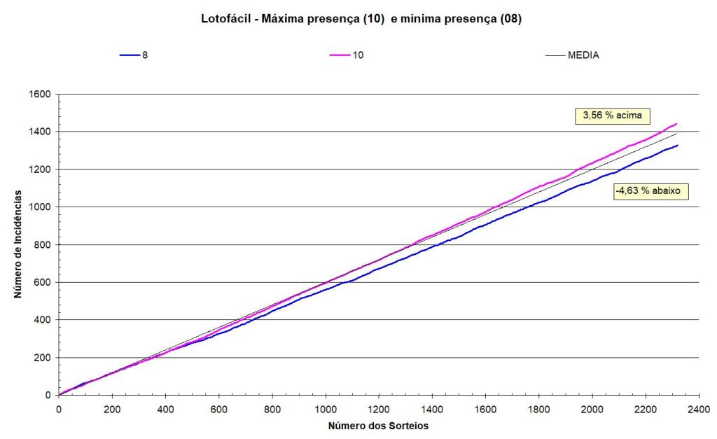 O número de sorteios é muito pequeno se comparado às combinações possíveis. Este fato implica que há um certo afastamento da média de incidências para cada número. A tendência é todos números ficarem próximos da média. Comparando Quina e Mega Sena com a Lotofácil podemos perceber que os afastamentos da Lotofácil são muito menores. Este fato é devido ao grande número de bolas sorteadas (15) e também das bolas participantes dos sorteios (25).