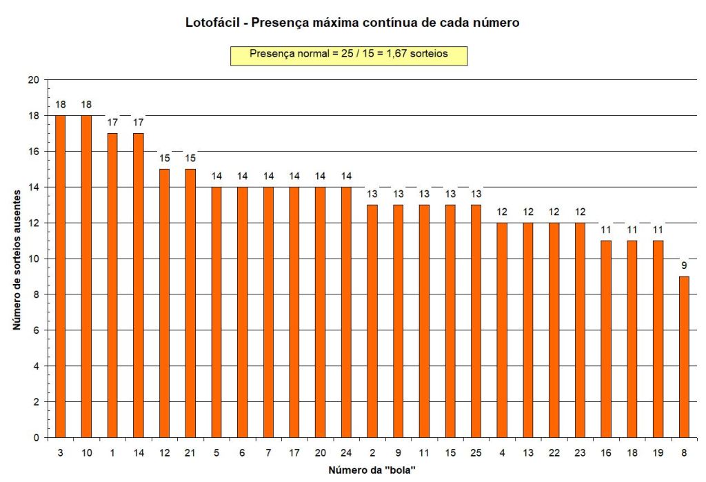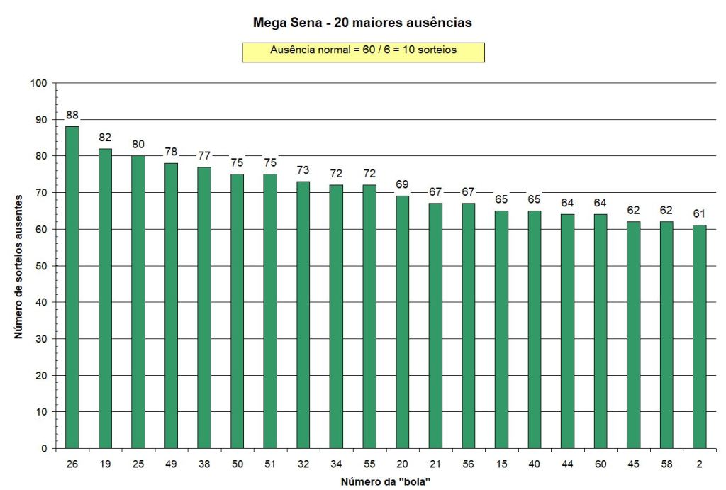 Como insistimos em afirmar que os números são sorteados aleatoriamente pode ocorrer que um número fique ausente durante um certo número de sorteios e, também, o contrário, estar presente seguidamente em alguns sorteios.