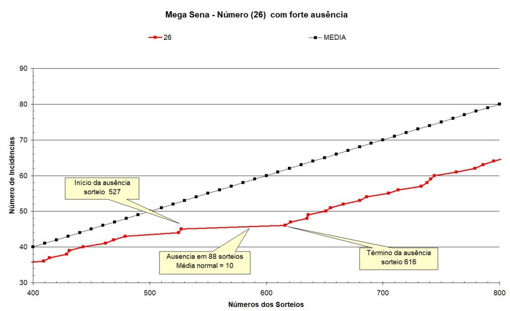 O número 26 esteve ausente durante 88 sorteios consecutivos; a média é a cada 10.