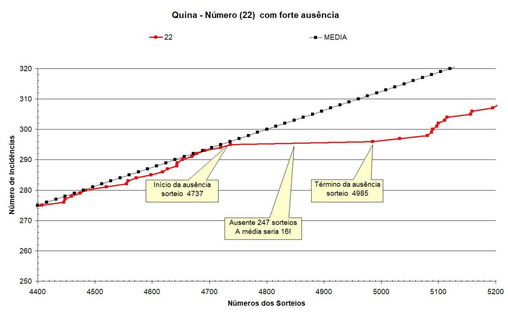 O número 22 esteve ausente durante 267 sorteios consecutivos; a média é a cada 16.
