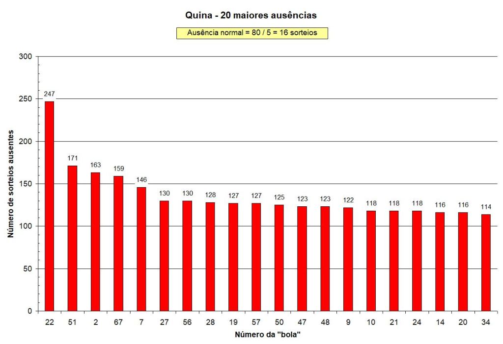 Estas figuras mostrando que TODOS os números podem ter longos períodos de ausência e apresentamos apenas os 20 mais ausentes em sorteios consecutivos.