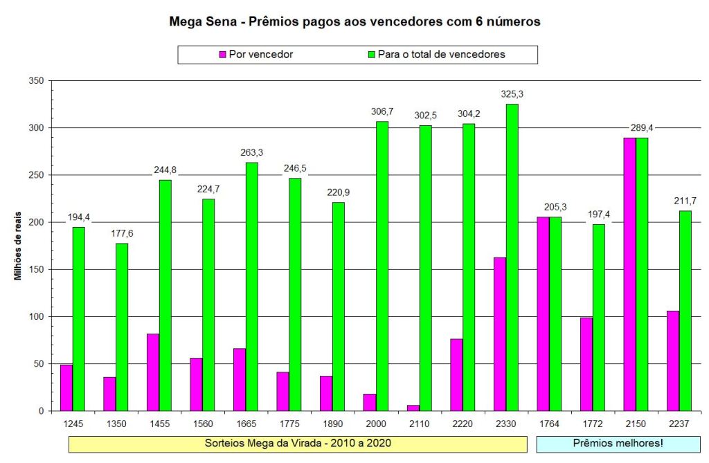 Nesta postagem vamos comentar sobre o número de vencedores nos sorteios, analisando figuras numeradas de “01, 02 e 03” e os 15 maiores prêmios pagos, analisando figuras de “04, 05 e 06”.