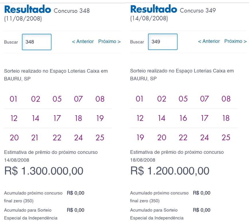 O destaque fica para os sorteios 348 e 349, que são consecutivos.