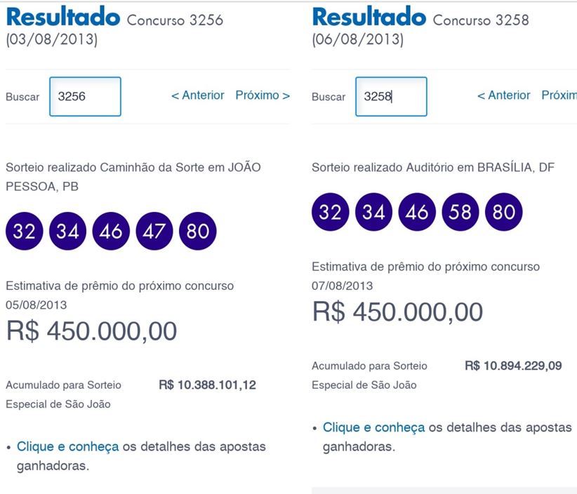 O destaque fica para os sorteios 3256 e 3258, que são quase consecutivos, realizados com apenas um sorteio intermediando e 3 dias de diferença.