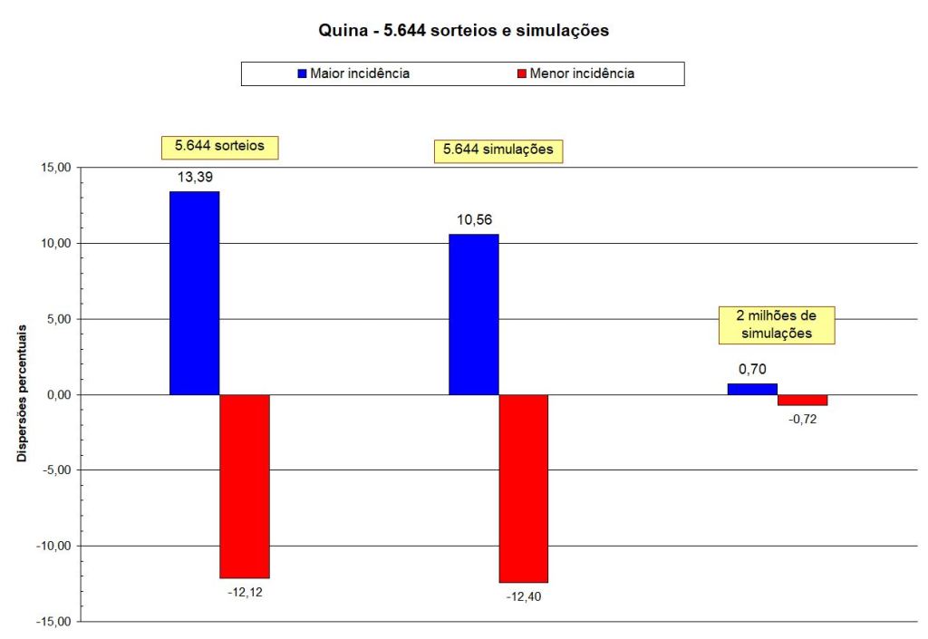 A primeira simulação efetuada mostra dispersão praticamente igual aos sorteios efetuados: incerteza de 10,56% a 13,39%.