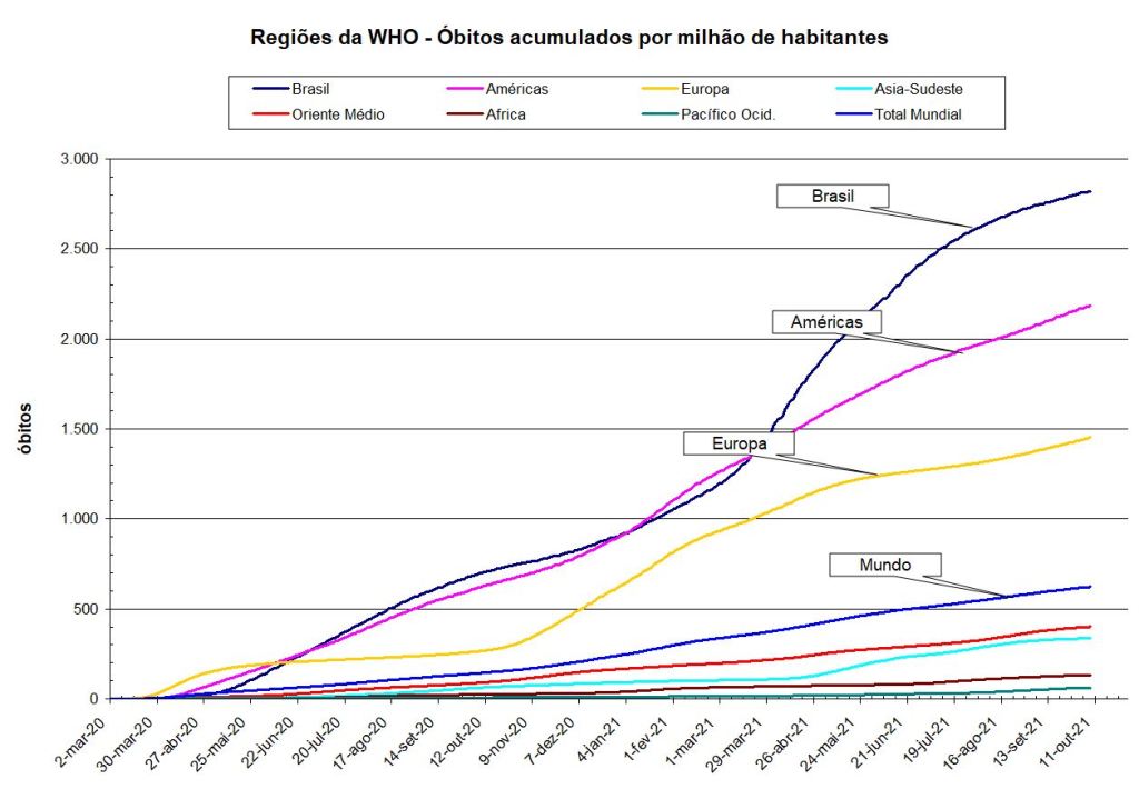 2) Regiões da WHO – Óbitos por milhão de habitantes em 12-10-2021