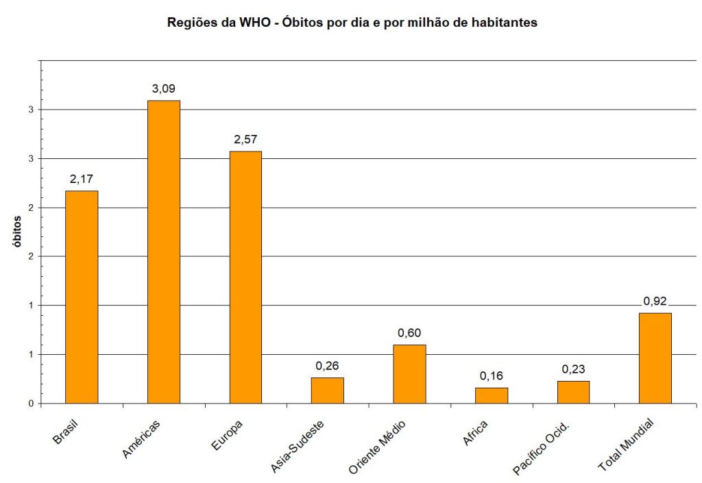1) Regiões da WHO – Evolução dos óbitos acumulados por milhão de habitantes
