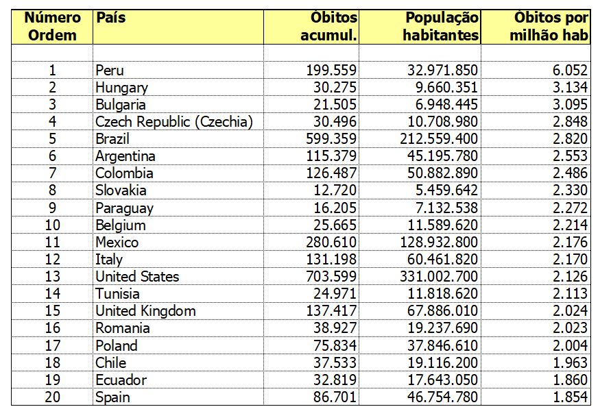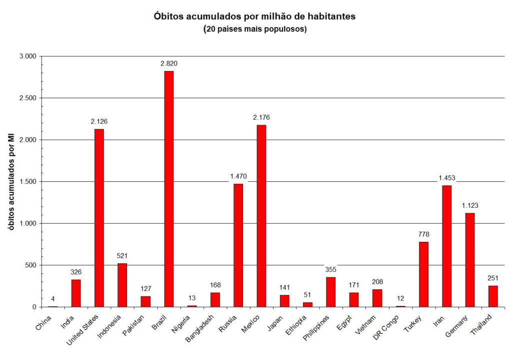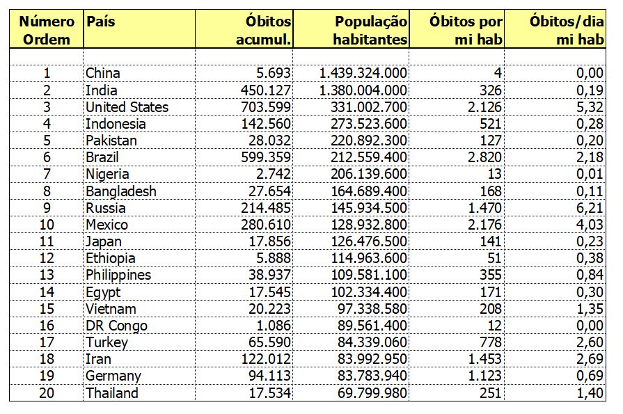 Deve haver uma explicação obscura para que o país mais populoso, no caso a China, tenha tido o menor número de óbitos acumulados.